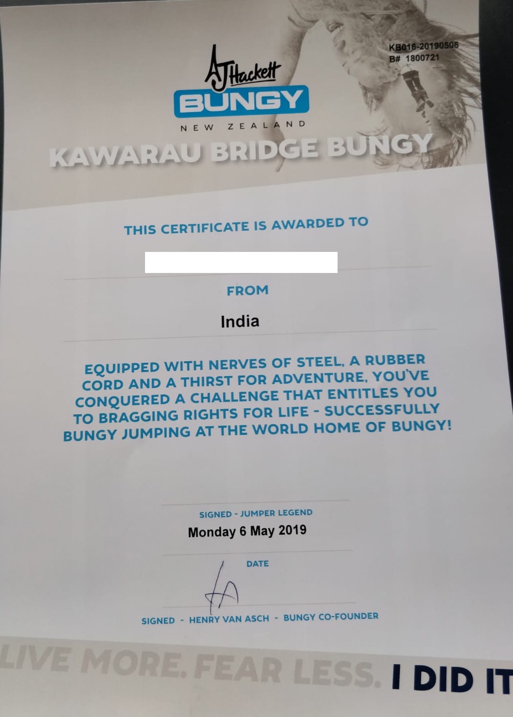 My husband felt happier than me witnessing my jump live. He told me that several people cheered for me and took my videos. I spoke to my parents after that and told them about the jump. They felt a bit shocked initially to hear about it, as I didn’t mention it to them before. We collected our photos, videos in a USB and a certificate which says the following: