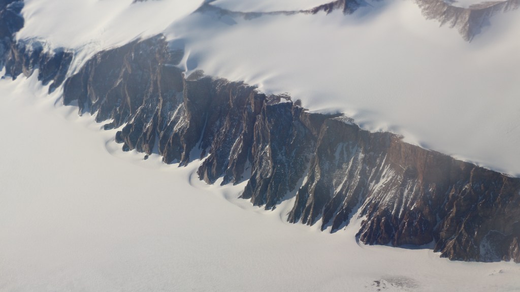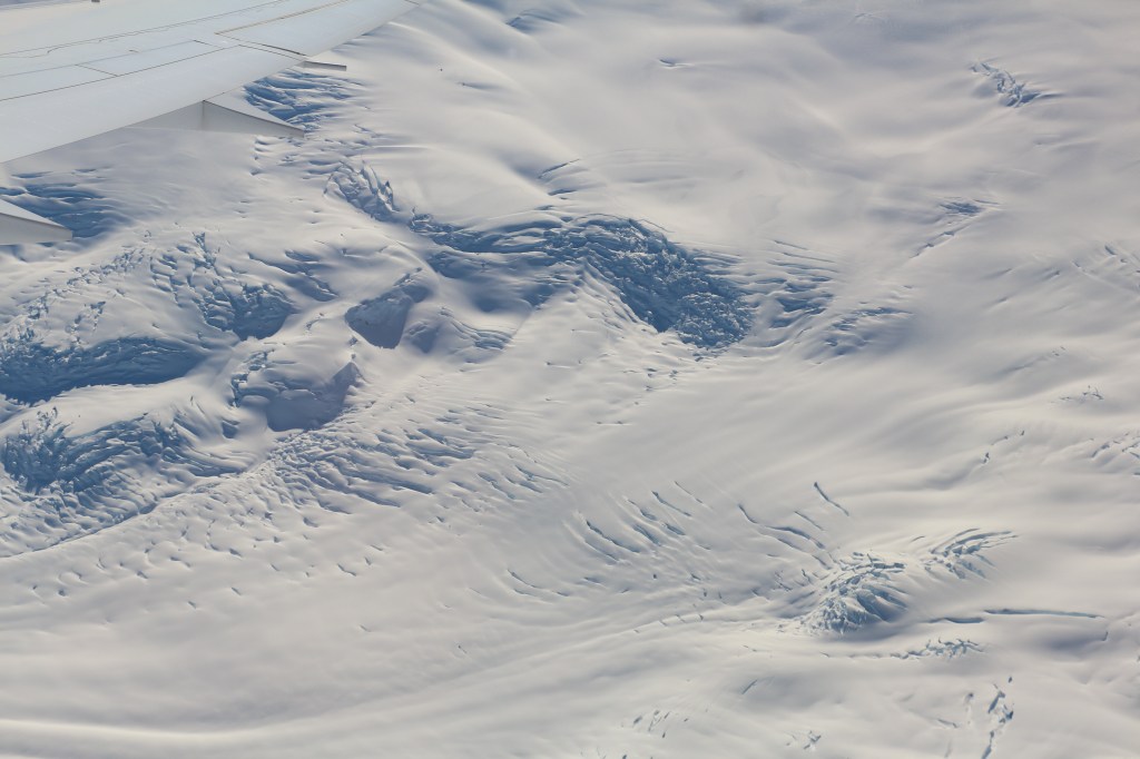 We flew back to the snowy parts of the continent and the mountains. I was in a meditative state by then and couldn’t stop feeling grateful for this amazing experience. I started guessing the landscapes under the snow/ice like a frozen river, glacier, sea, valley or a canyon 🙂 I think the polar equivalent of river is a glacier and sea is the ice sheets.