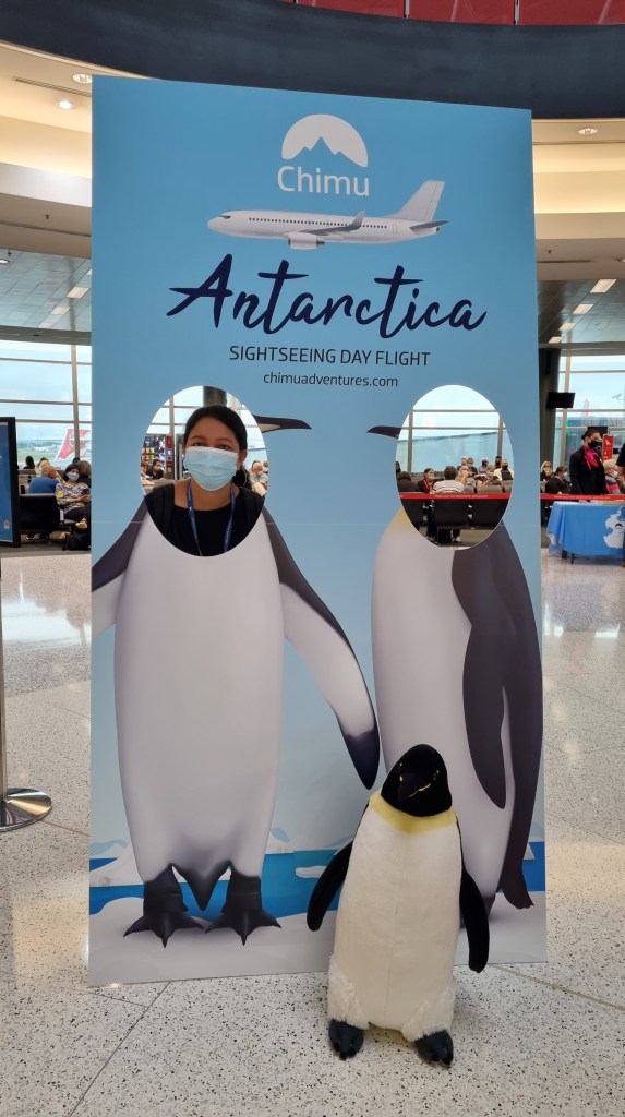 There was a cute photo banner at the boarding gate. During boarding, we were provided with two boarding passes, a map of Antarctica and a stamp on the passport. Everyone boarding the flight looked very happy and excited at this unique flight.