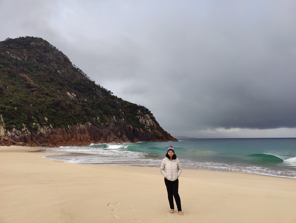 We had our stay at a hotel near Fingal beach and we went to Fingal beach in the afternoon after the rain subsided.