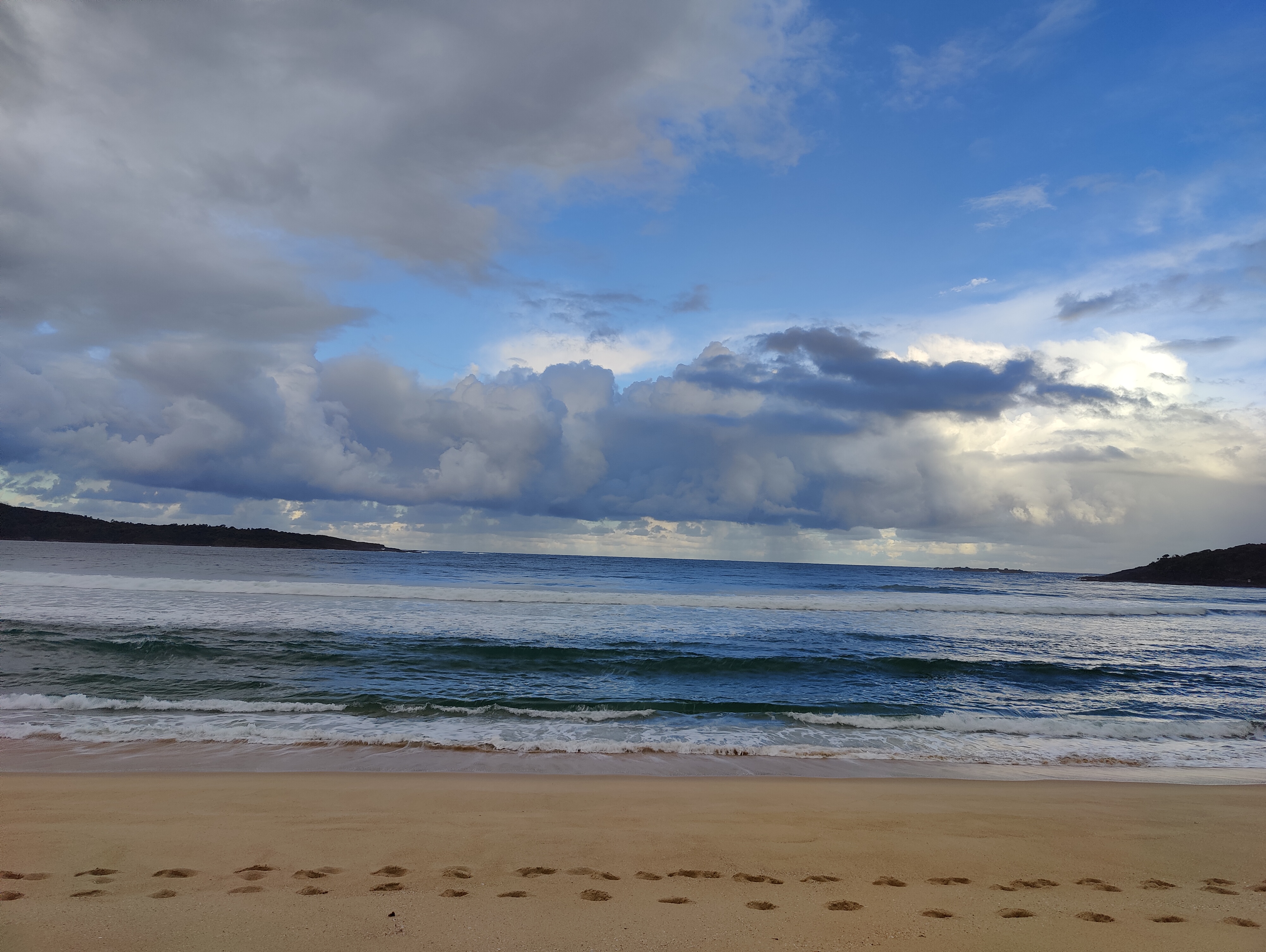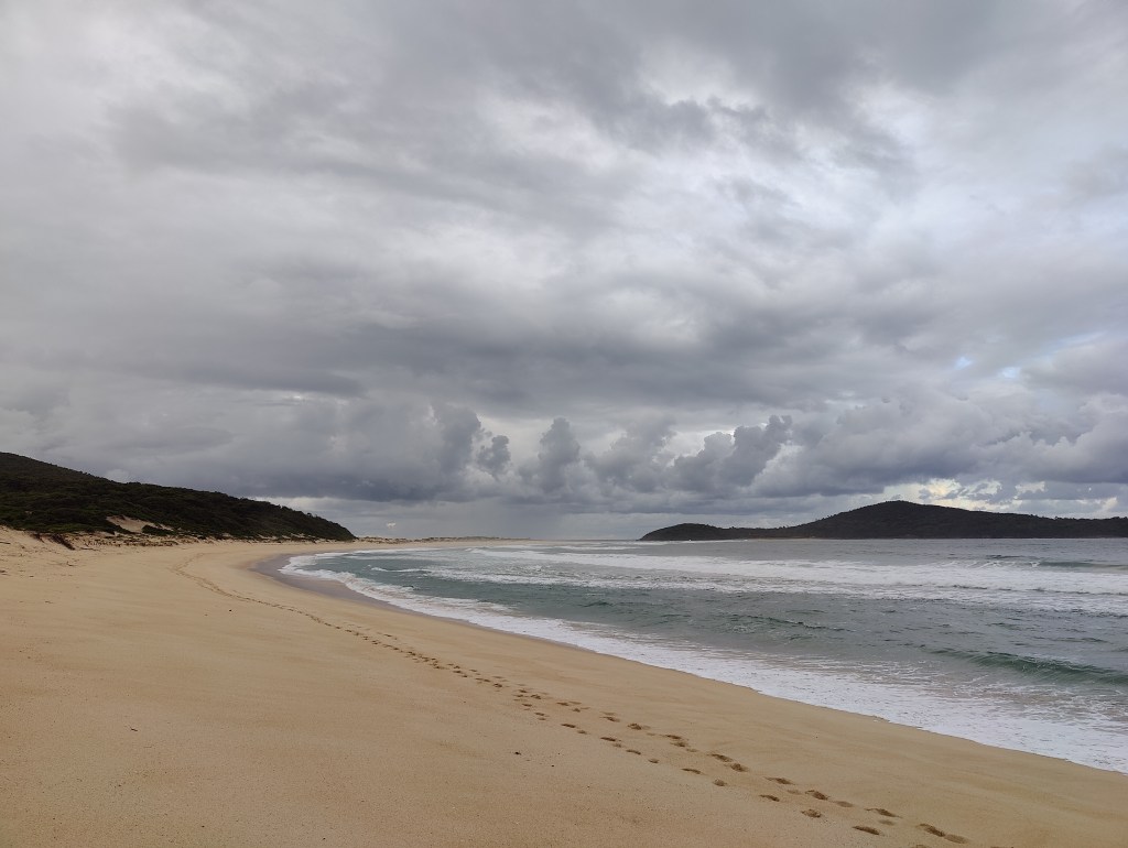 The first one was Zenith Beach, 5 mins walk from the nearest car park. It was a cloudy day ready to rain anytime and we were the only ones on the beach. The landscape of the beach is strikingly beautiful with Tomaree Head on the left and Stephens peak on the right. The tall mountains in contrast to the bright white sand, clear green water and the cloudy sky made it extremely picturesque. We spent some quiet time walking along the beach and appreciated the natural beauty around us, before it started to rain.